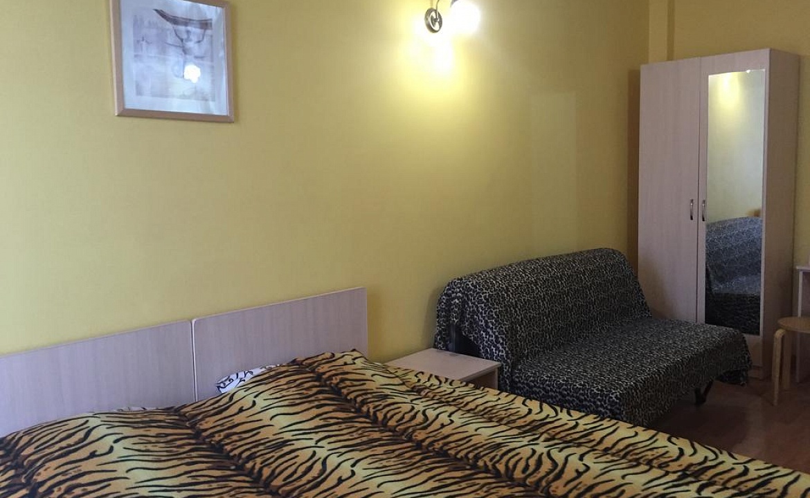 Мебель: односпальные или двуспальная кровати, диван-кровать, кресло-кровать, шкаф, стулья, прикроватные тумбочки, журнальный столик, зеркало. Удобства: сплит-система, холодильник (на этаже), телевизор, эл. чайник, посуда.