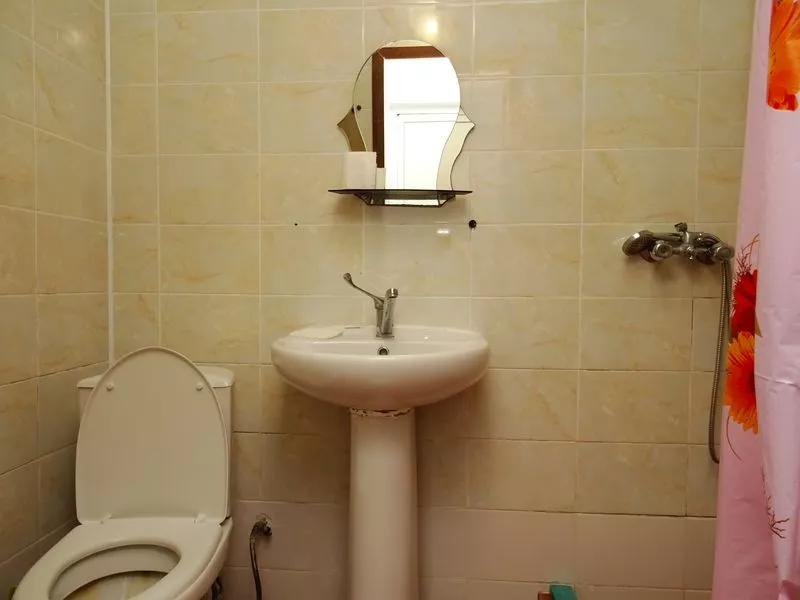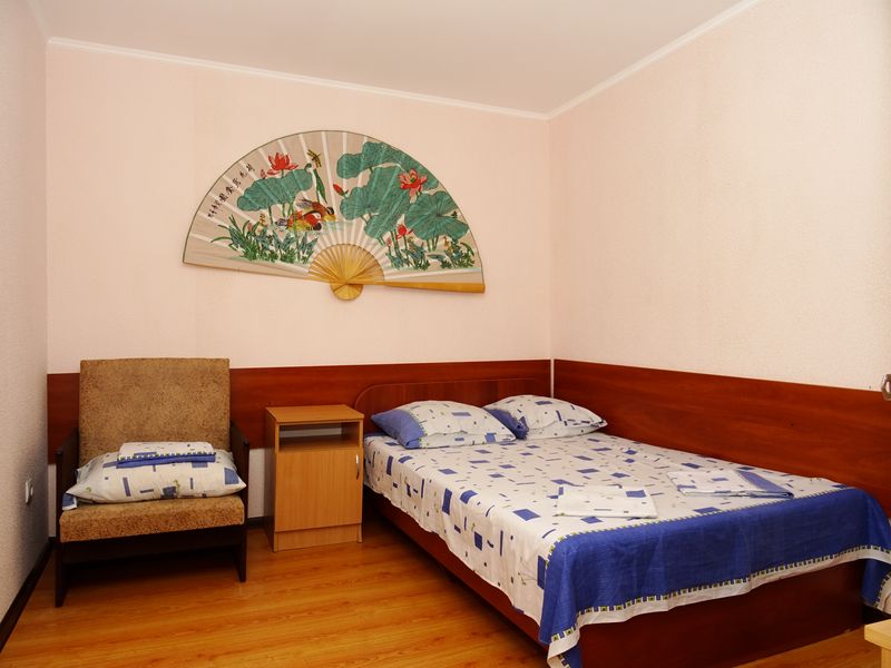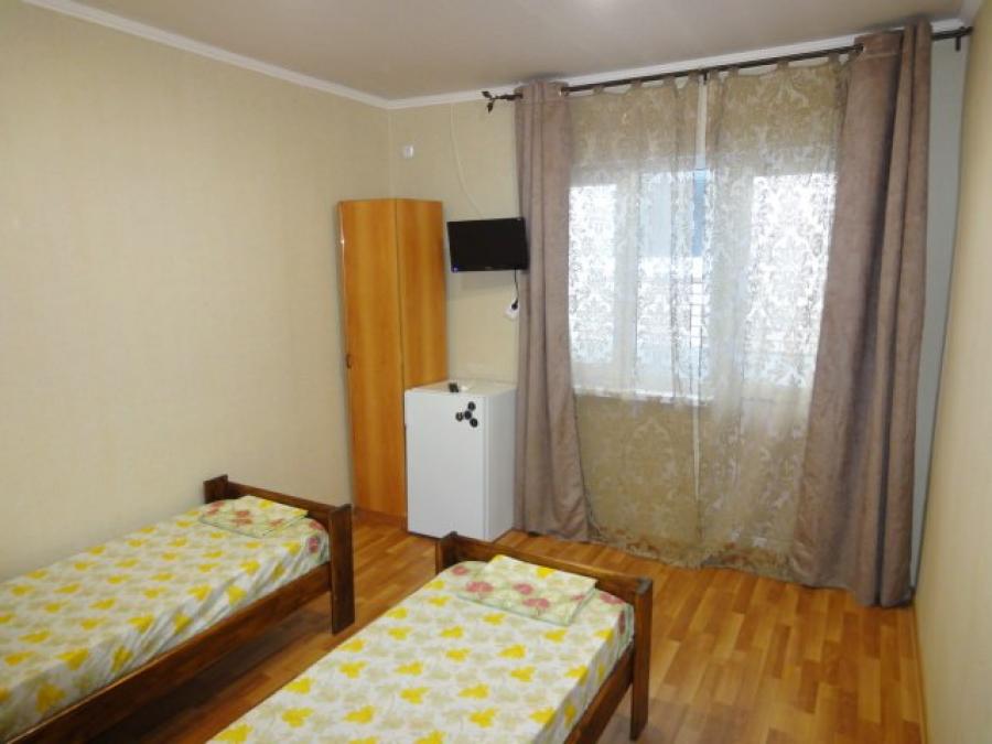 Все номера "Стандарт" оснащены: одно-, полутора- или двухспальные кровати, прикроватные тумбочки, шкаф, туалетный столик+зеркало, телевизор, холодильник, кондиционер, сан. узел в каждом номере (горячая и холодная вода постоянно!!!). Возле каждого номере, на общем балконе индивидуальный стол и стулья.Имеется кухня для самостоятельного приготовления пищи. Так же на территории столовая для организованного питания, домашняя кухня по приемлемым ценам!Во дворе гостевого дома есть детская площадка, мангал. Двор большой, зеленый и уютный! WI-FI бесплатно! Развитая инфраструктура: рынок, магазин, аптека, кафе, диско-бар, аквапарк, аттракционы.- пляж песчаный - 3-5 минут- центр развлечений - 5 минут