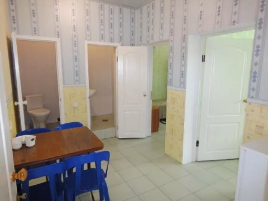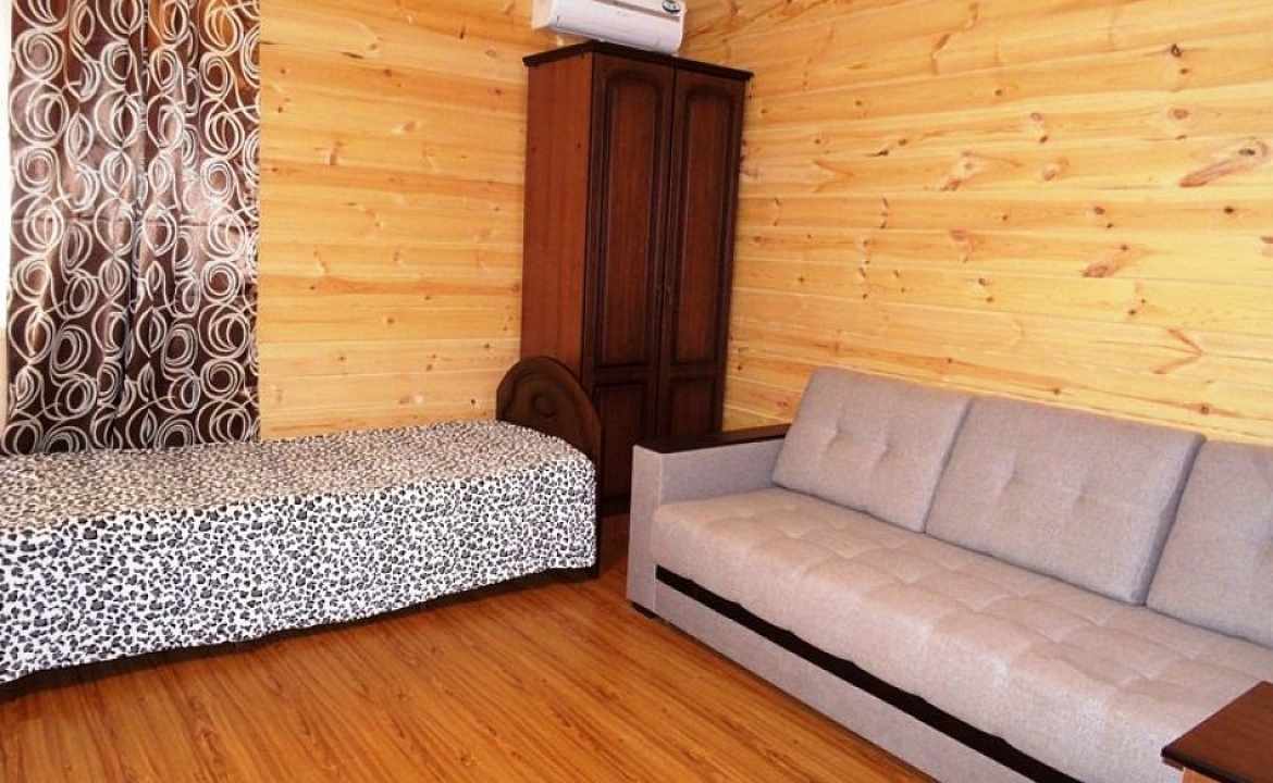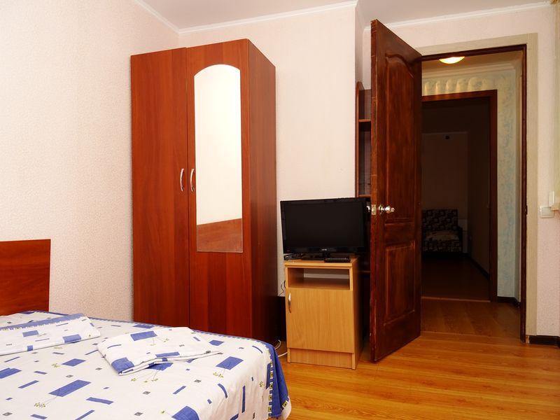 Мебель: односпальные и двуспальная кровати, диван-кровать, шкаф, стулья, прикроватные тумбочки, стол, зеркало. Удобства: кондиционер, холодильник, телевизор, посуда.