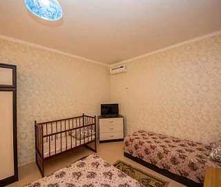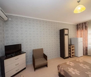 Мебель: односпальные или двуспальная кровати, диван-кровать, диван, кресло-кровать, кресла, шкаф, стулья, пуфики, прикроватные тумбочки, журнальный столик, туалетный столик, стол, комод, прихожая, вешалка, зеркало. Удобства: сплит-система и телевизор (в каждой спальне), спутниковое ТВ, холодильник, чайник, СВЧ, посуда, интернет.