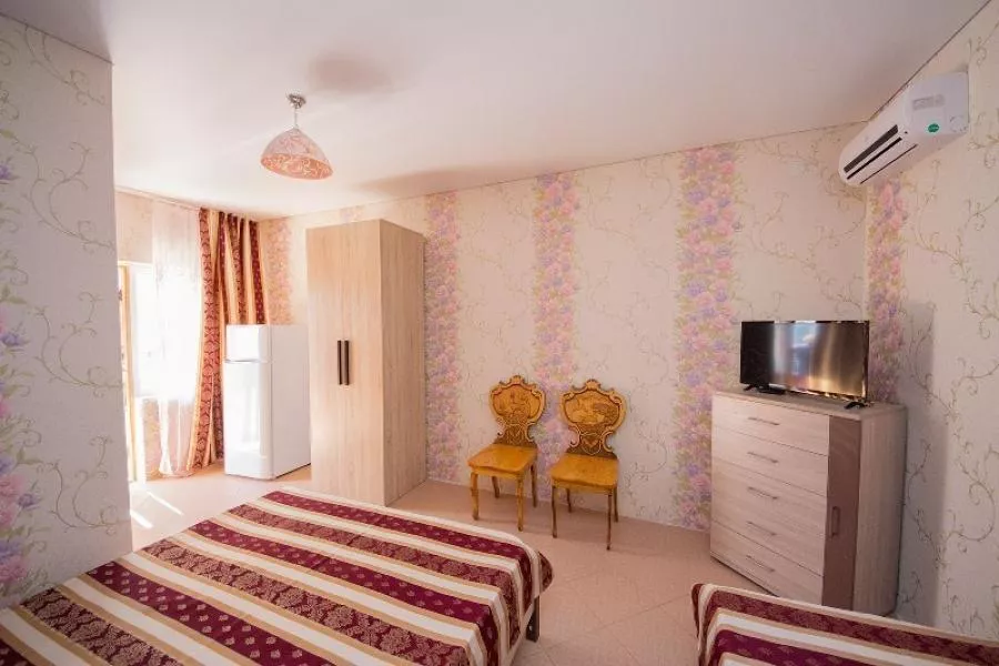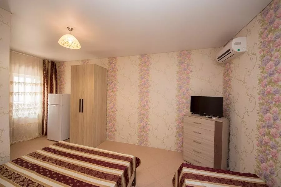 Мебель: односпальные или двуспальная кровати, кресло-кровать, шкаф, стулья, прикроватные тумбочки, журнальный столик, комод, прихожая, вешалка, зеркало. Удобства: кондиционер, телефон, телевизор, спутниковое ТВ, холодильник, СВЧ, интернет, терраса.