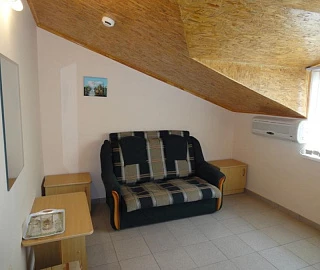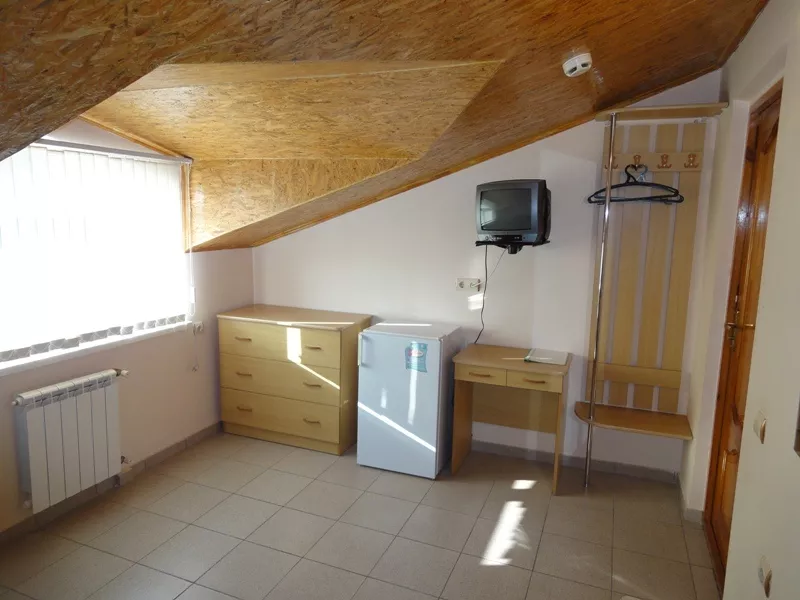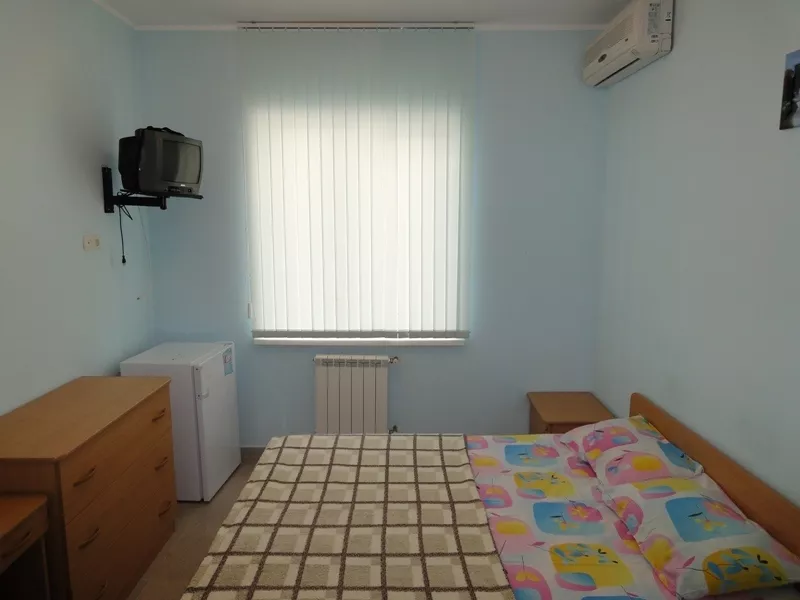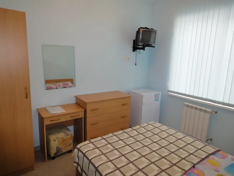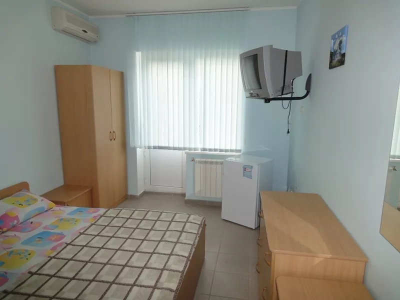 Мебель: односпальные или двуспальная кровати, диван-кровать, кресло-кровать, шкаф, стулья, прикроватные тумбочки, журнальный столик, туалетный столик, комод, пуфики,зеркало. Удобства: кондиционер, холодильник, телевизор, посуда, балкон (наличие уточнять).