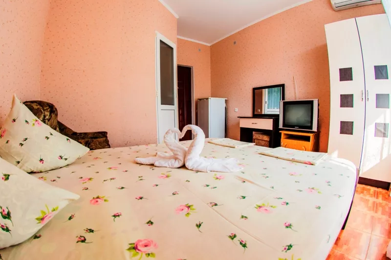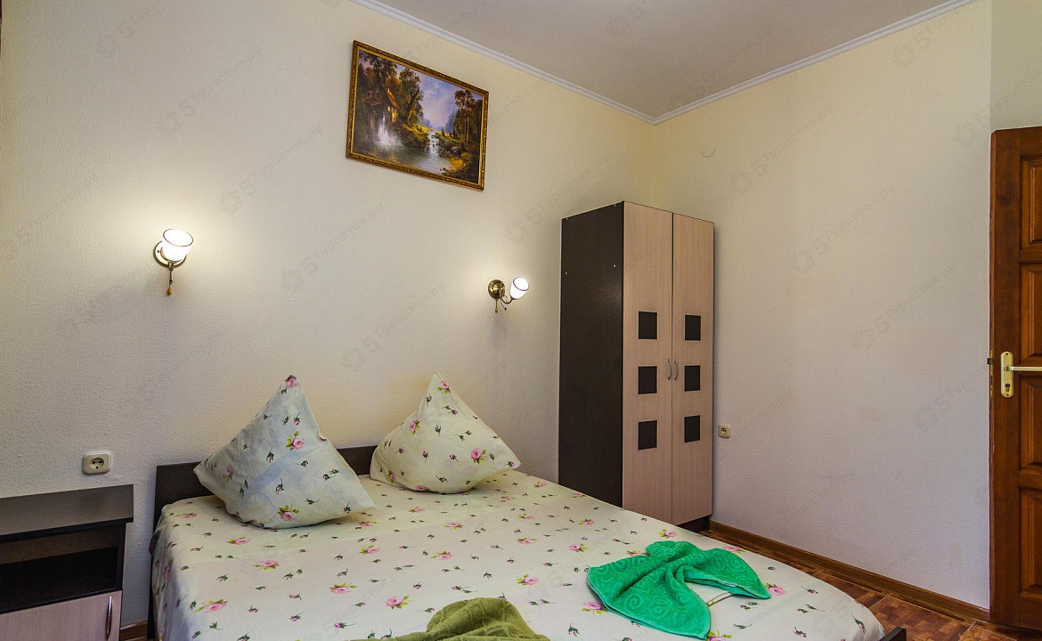 Мебель: односпальные или двуспальная кровати, шкаф, прикроватные тумбочки, журнальный столик, туалетный столик, вешалка, зеркало, на балконе набор летней мебели (стол-стулья). Удобства: кондиционер, холодильник, телевизор.