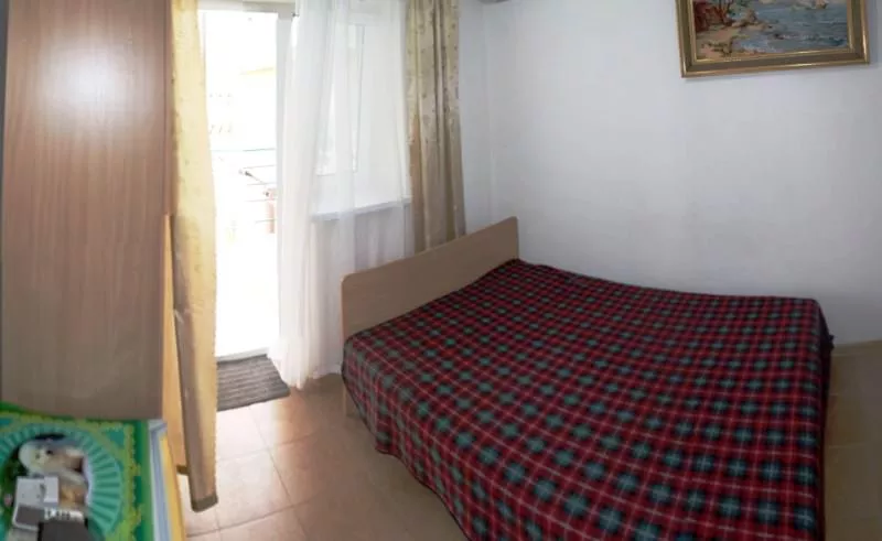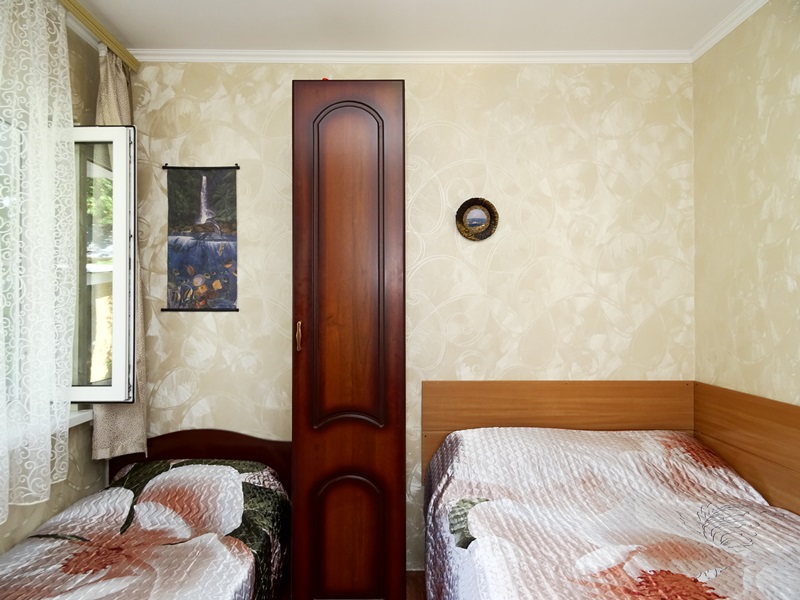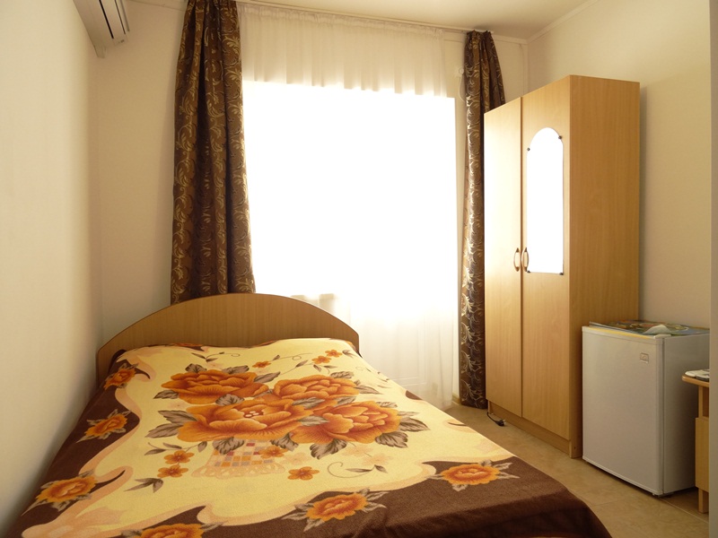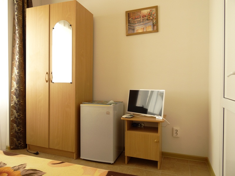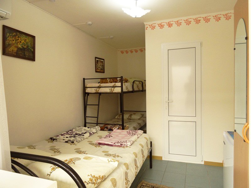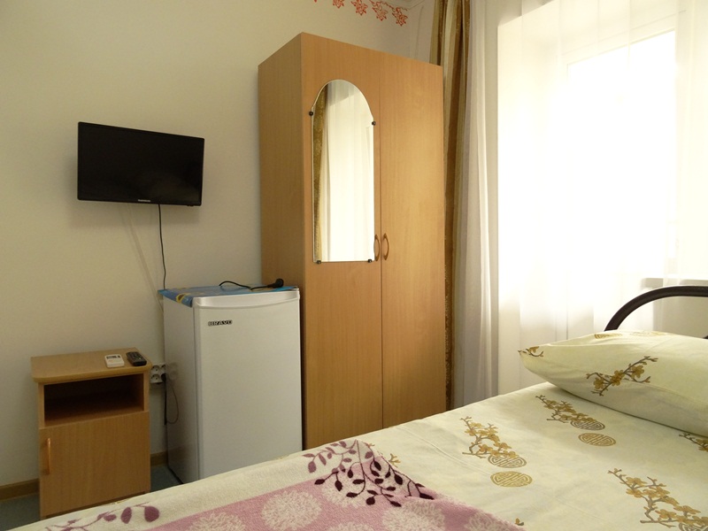 Стандартные номера 2, 3 и 4х-местные: 1 и 2х спальные места, телевизор, сплит-система, холодильник, прикроватные тумбочки, шкаф, санузел в номере. Возле каждого номера на балконе (1 этаж) и терассе (2 этаж) имеются индивидуальные столик и стулья. Горячая и холодная вода постоянно.В шаговой доступности рынок, магазин, кафе, столовая, ресторан, аттракционы, аквапарк, аптека, экскурсии, ж/д и авиа кассы. Остановка маршрутного такси 20 метров.- пляж песчаный - 5 минут