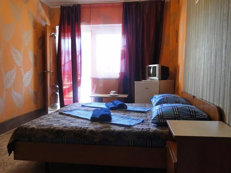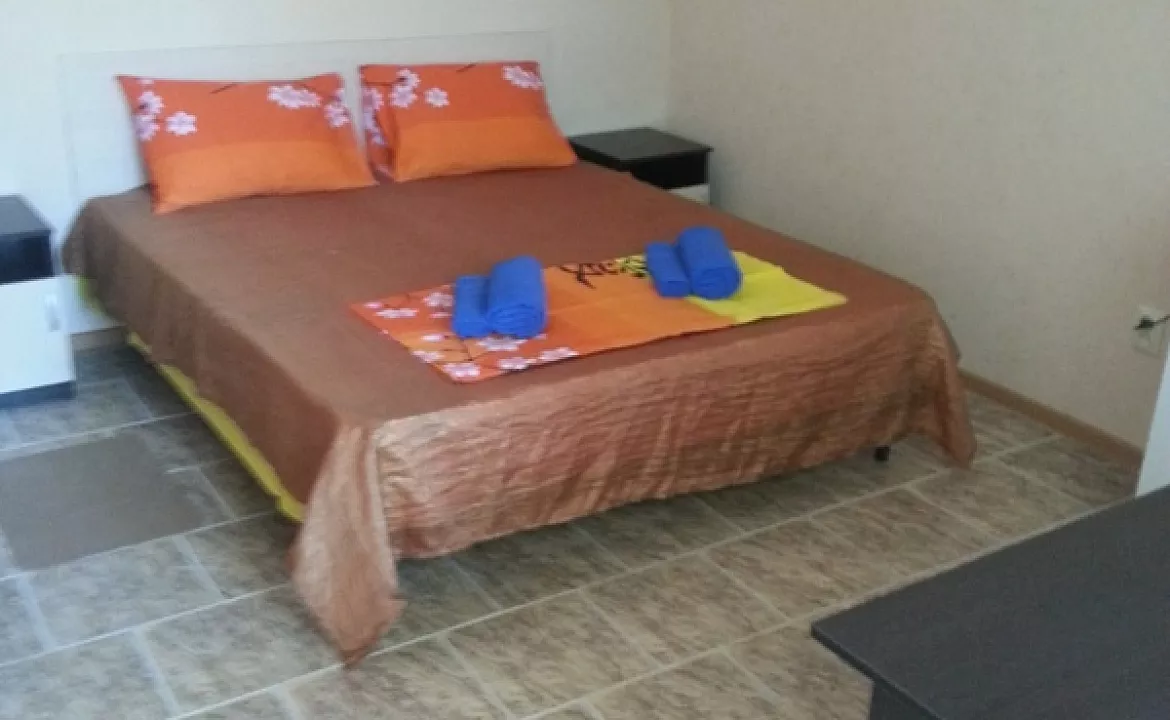 Мебель: односпальная кровать, диван-кровать, шкаф, стулья, тумбочки, журнальный столик, зеркало. Удобства: кондиционер, телевизор, холодильник.