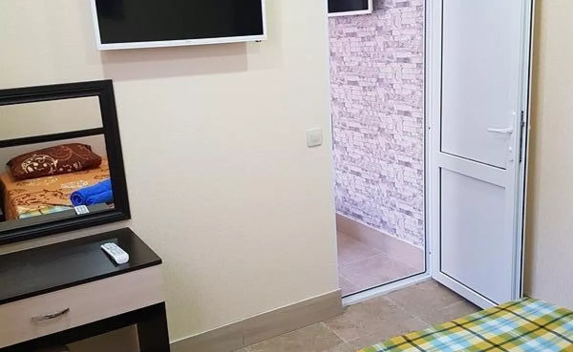 Мебель: односпальная кровать, кресло-кровать, шкаф, стулья, тумбочки, журнальный столик, вешалка, зеркало. Удобства: кондиционер (сплит-система), холодильник, телевизор, интернет.