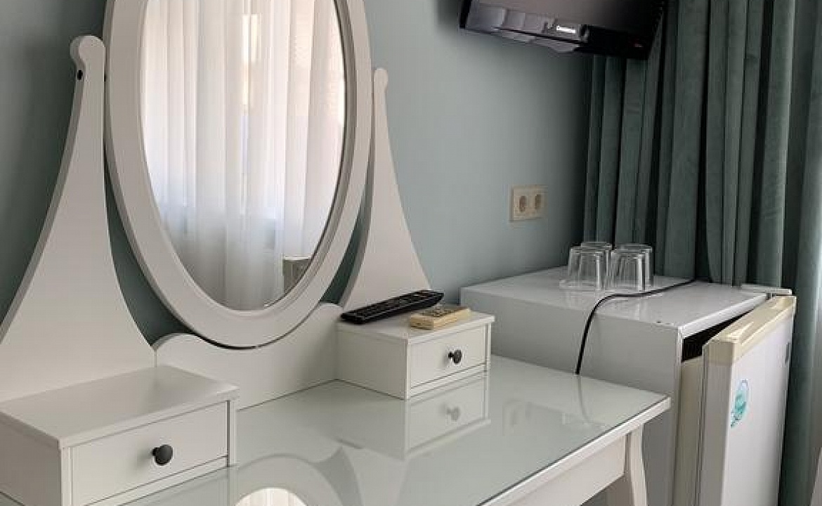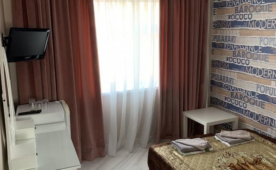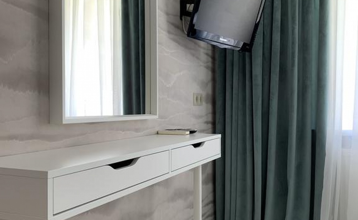 Мебель: односпальные или двуспальная кровати, шкаф, стулья, прикроватные тумбочки, стол, зеркало. Удобства: кондиционер, телевизор, холодильник.