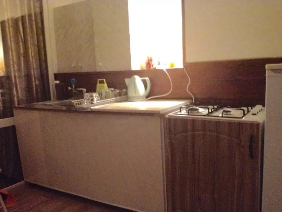 Мебель: односпальные или двуспальная кровати, диван-кровать, шкаф, стулья, журнальный столик, стол, зеркало, кухонный гарнитур, обеденная зона. Удобства: кондиционер, 2 телевизора, холодильник, СВЧ, чайник, посуда.