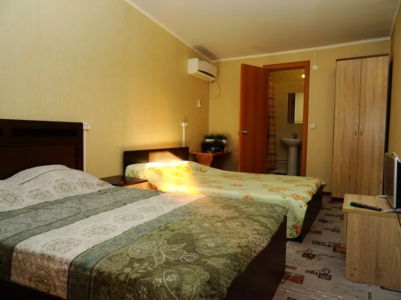 Мебель: кровать, диванчик, шкаф, 2 тумбочки,. Удобства: кондиционер, телевизор, холодильник, Wi-Fi интернет.
