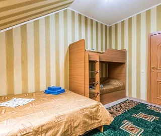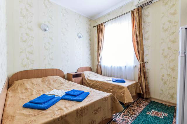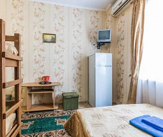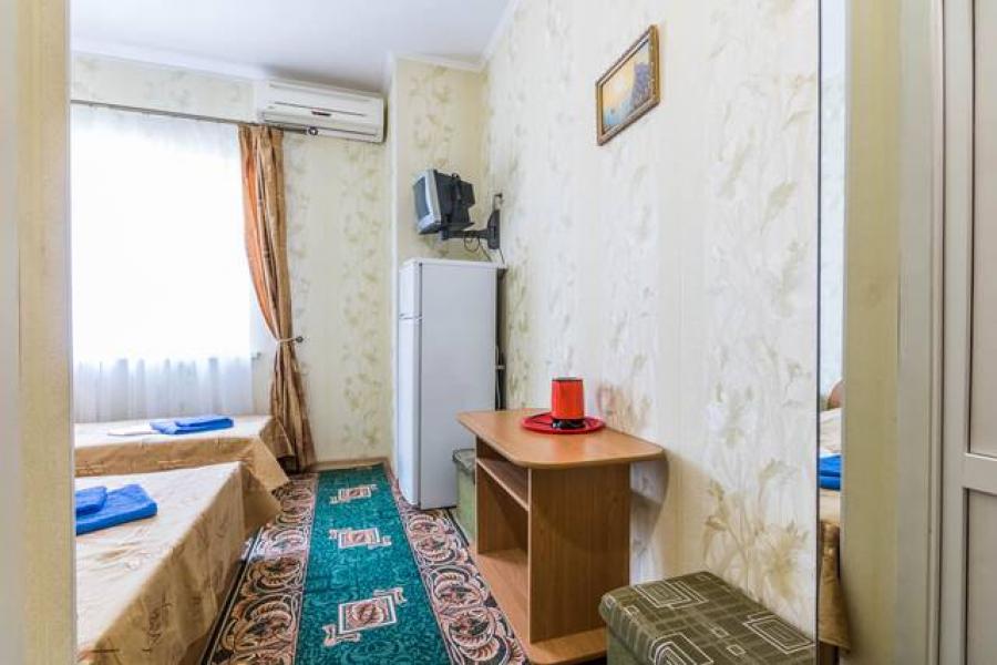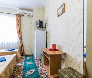 Мебель: кровати, шкаф, прикроватные тумбочки, журнальный столик, вешалка. Удобства: сплит-система, телевизор, цифровое ТВ, холодильник, чайник.