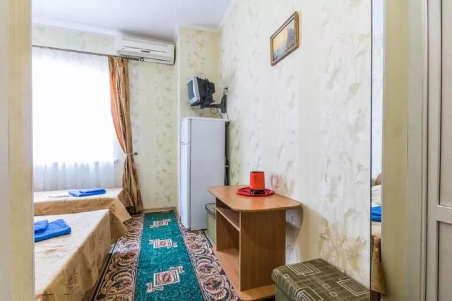 Мебель: кровати, шкаф, прикроватные тумбочки, журнальный столик, вешалка. Удобства: сплит-система, телевизор, цифровое ТВ, холодильник, чайник, эл. плита.