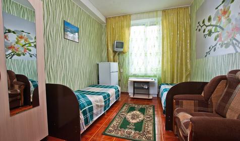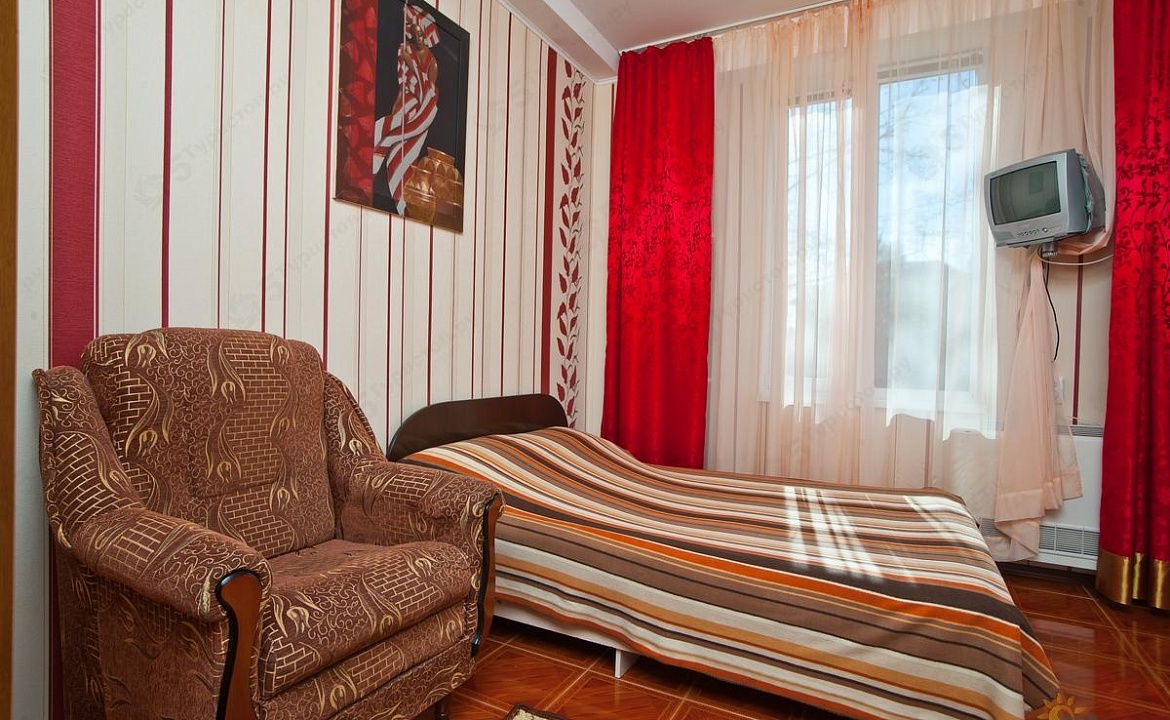 Спальных мест: 2 (возможно доп место платно). Площадь номера: 15 кв.м. Комнат в номере: 1 Этаж: 1-3. Санузел+Душ: в номере. Мебель: двуспальная кровать, кресло-кровать, шкаф, журнальный столик, зеркало. Удобства: кондиционер, телевизор, холодильник, интернет, балкон (наличие уточнять). А так же есть номера: "Стандарт 3х-местный", "Стандарт 4х-местный".