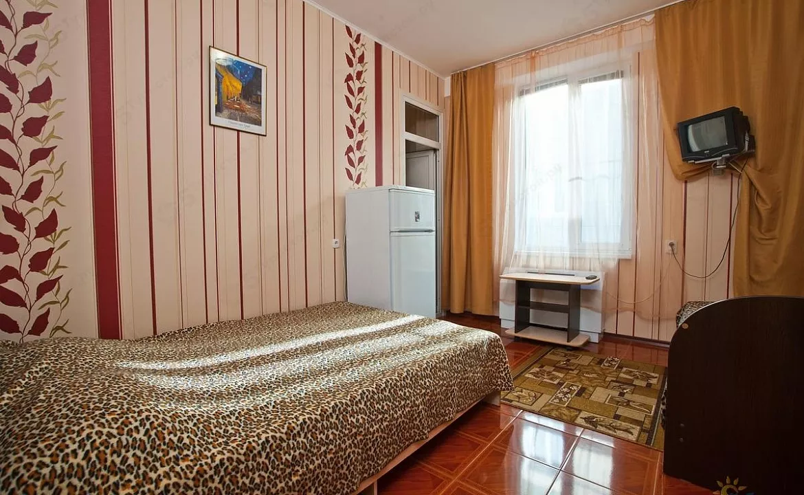 Спальных мест: 2 (возможно доп место платно). Площадь номера: 15 кв.м. Комнат в номере: 1 Этаж: 1-3. Санузел+Душ: в номере. Мебель: двуспальная кровать, кресло-кровать, шкаф, журнальный столик, зеркало. Удобства: кондиционер, телевизор, холодильник, интернет, балкон (наличие уточнять). А так же есть номера: "Стандарт 3х-местный", "Стандарт 4х-местный".