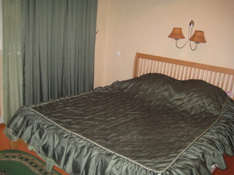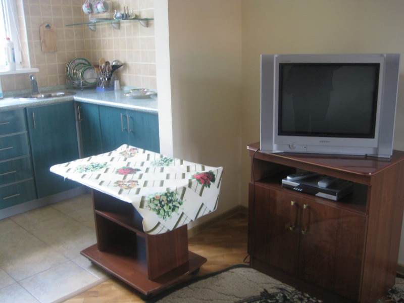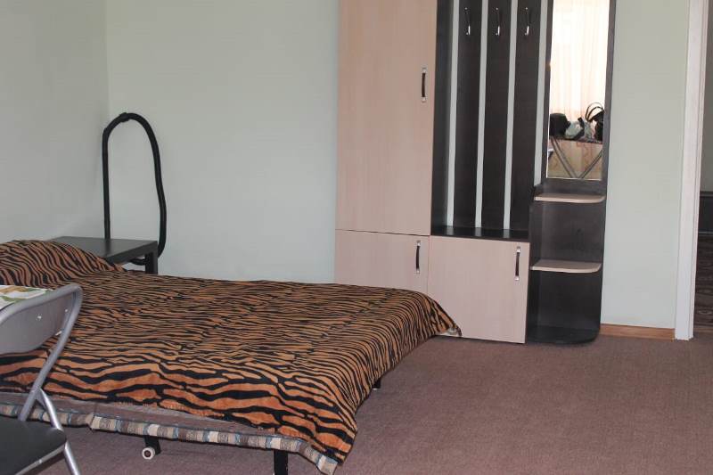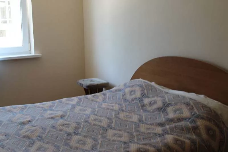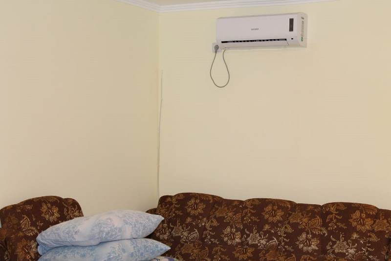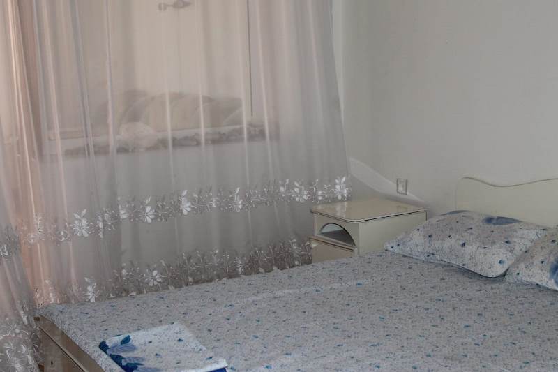 Спальных мест: 4 (возможно доп место бесплатно). Площадь номера: 40 кв.м. Комнат в номере: 1 Этаж: 1. Санузел+Душ: в номере. Мебель: двуспальная кровать, диван-кровать, кресло-кровать, шкаф, стулья, прикроватные тумбочки, журнальный столик, стол, вешалка, зеркало, кухонный гарнитур, обеденная зона. Удобства: кондиционер, телевизор, спутниковое ТВ, холодильник, эл. чайник, СВЧ, посуда. А так же есть номера:"3х-комнатный" "2х-комнатный""С двориком" 2х-уровневый"2х-комнатный" (3 этаж).