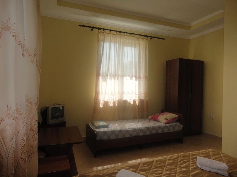 Номер "Полулюкс". Вместимость от 2 до 4 человек, площадь 16 кв.м. В номере душ, туалет, ТВ, холодильник, сплит-система, двуспальная или односпальные кровати, другая мебель. Стоимость от 300 до 500 руб/чел/сут в зависимости от сезона.