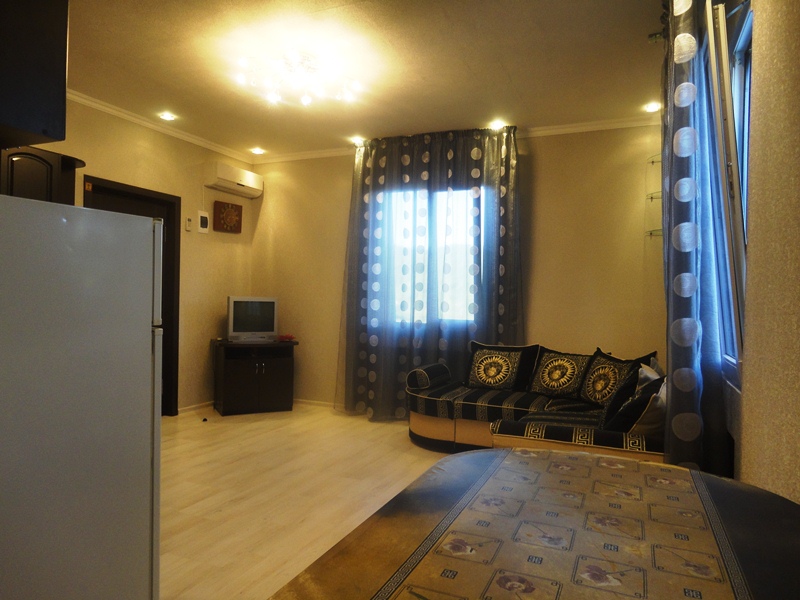 Номер "Люкс" - двухкомнатный номер, 46 кв.м., прихожая с отлично оборудованной кухней, зал и спальня, душ, туалет, LCD TV, холодильник, сплит-система, вместимость до 6 человек.