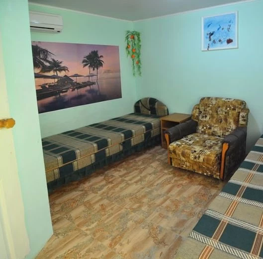Мебель: односпальные кровати, кресло-кровать, шкаф, стулья, кресла, пуфики, прикроватные тумбочки, стол, прихожая, вешалка, зеркало, обеденная зона. Удобства: кондиционер, телевизор, спутниковое ТВ, СВЧ, эл. чайник, посуда, балкон.
