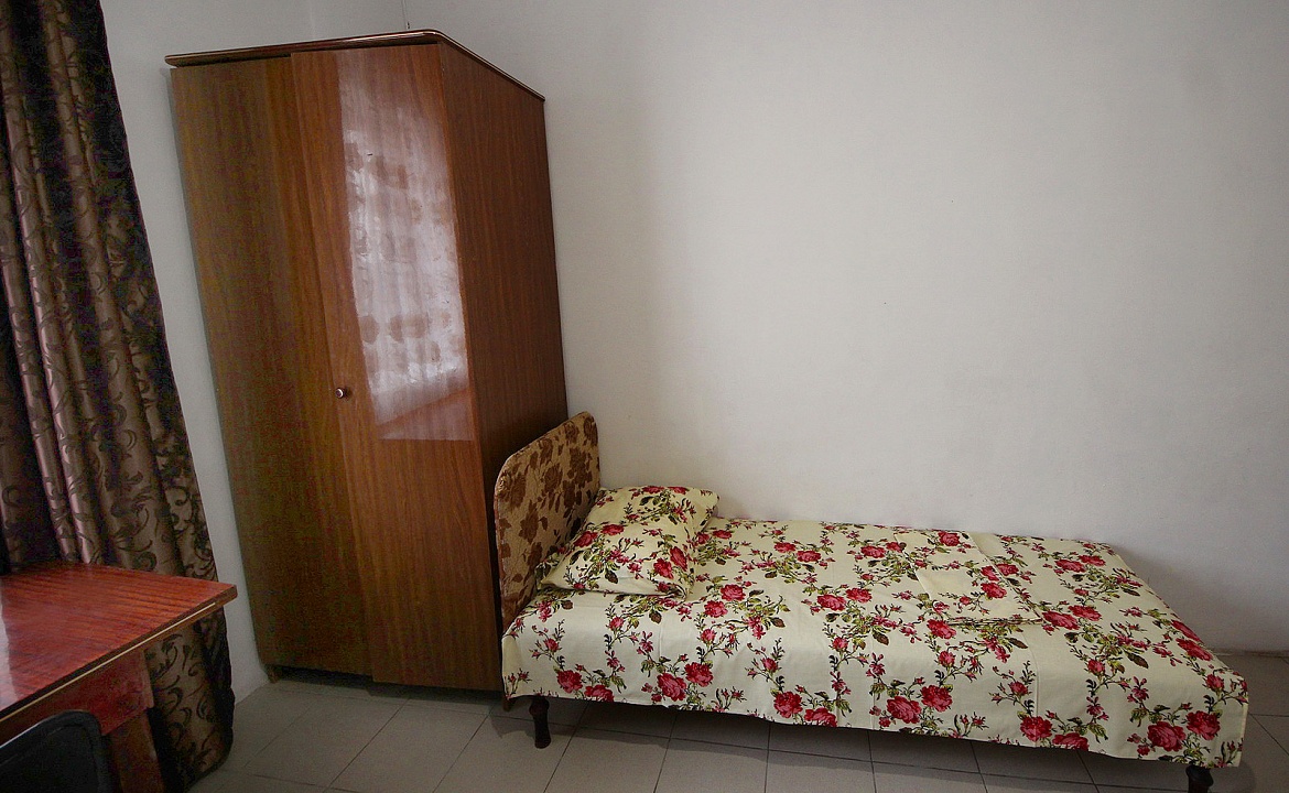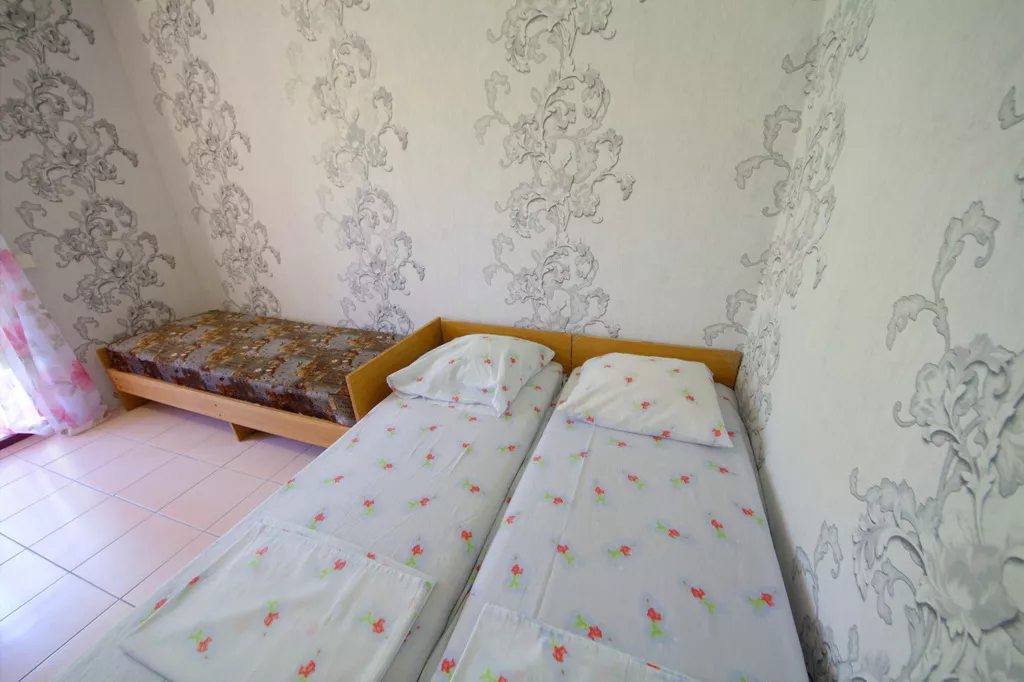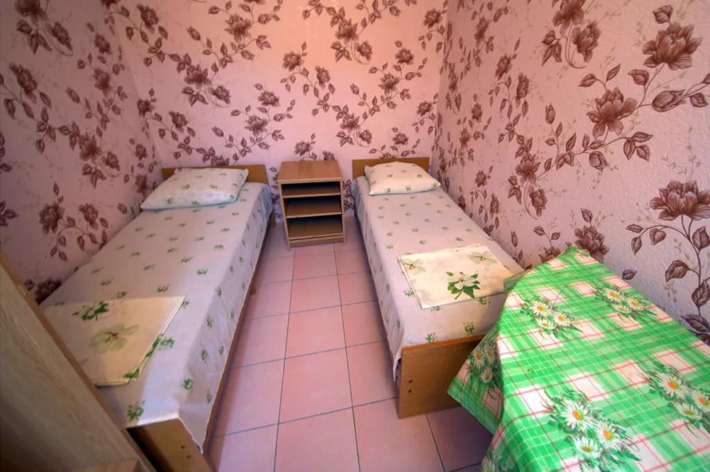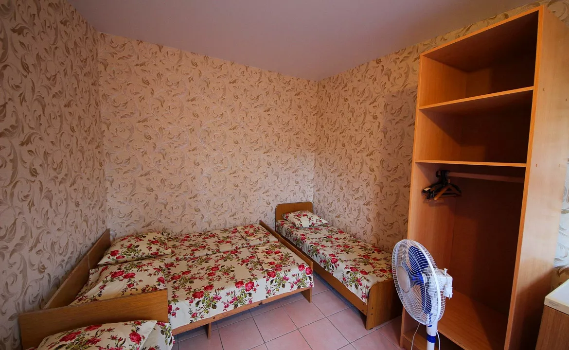 Мебель: односпальные кровати, шкаф, стулья, стол, вешалка. Удобства: вентилятор, холодильник (наличие уточнять), интернет.