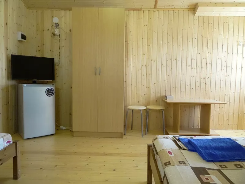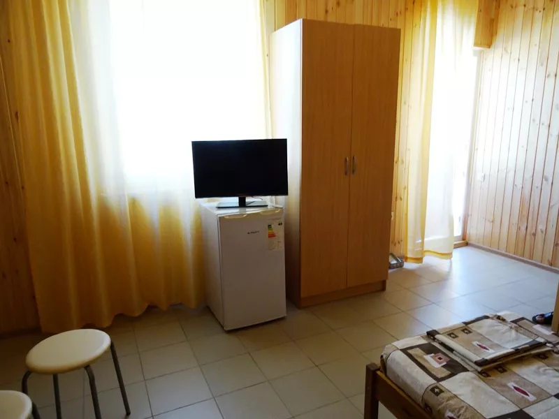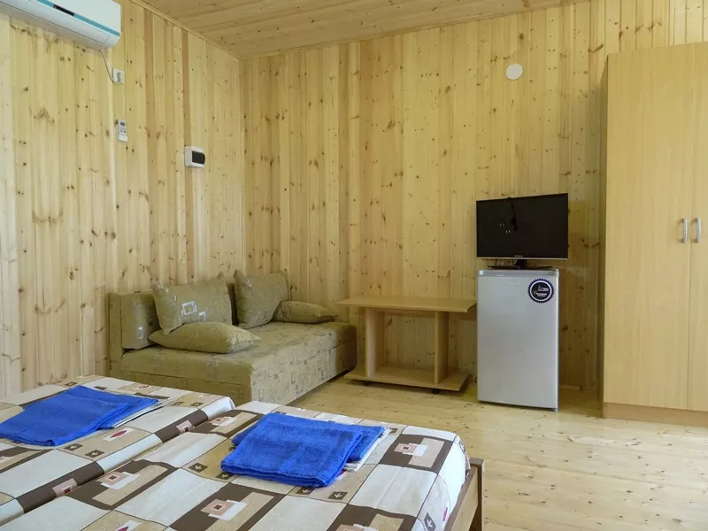 Мебель: односпальные или двуспальная кровати, диван-кровать, шкаф, стулья, прикроватные тумбочки, журнальный столик, вешалка, зеркало. Удобства: сплит-система, телевизор, холодильник, балкон.