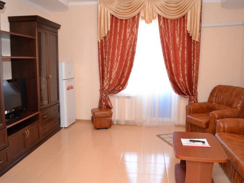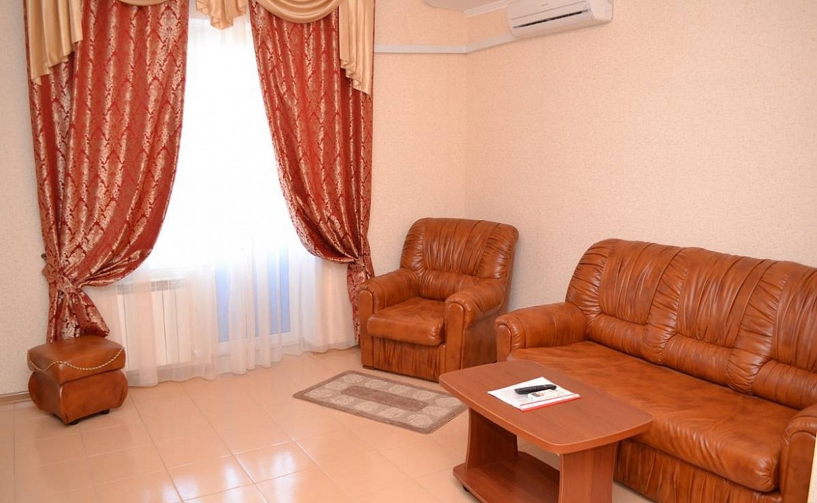 Мебель: двуспальная кровать, диван-кровать, кресла, стулья, пуфики, шкаф, прикроватные тумбочки, стол, журнальный столик, туалетный столик, зеркало. Удобства: кондиционер, холодильник, телевизор, спутниковое ТВ, балкон.