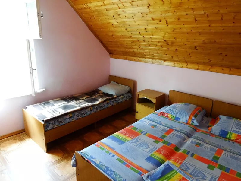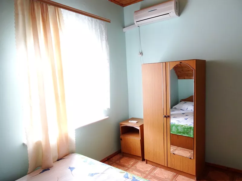 Мебель: односпальные и двуспальная кровати, шкаф, прикроватные тумбочки, зеркало. Удобства: сплит-система, интернет, холодильник, эл. чайник, посуда.
