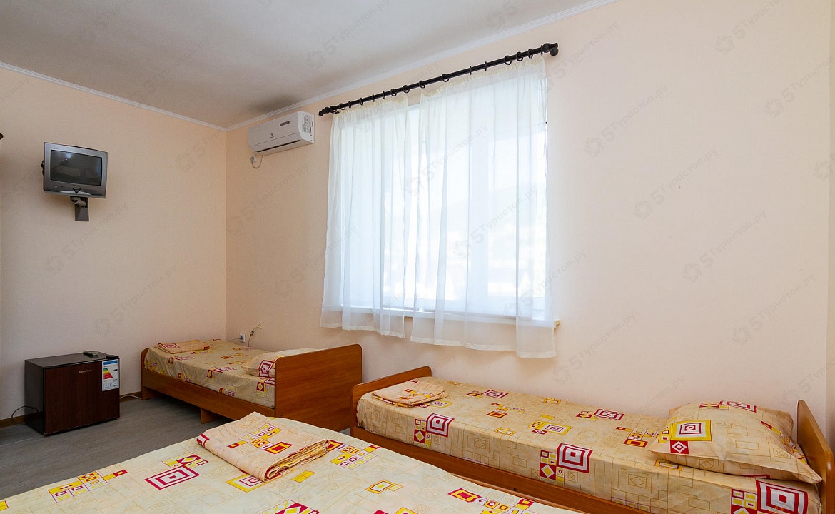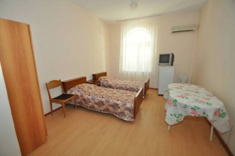 Мебель: односпальные или двуспальная кровати, шкаф, прикроватные тумбочки. Удобства: кондиционер, телевизор, интернет, холодильник, чайник, полотенца.