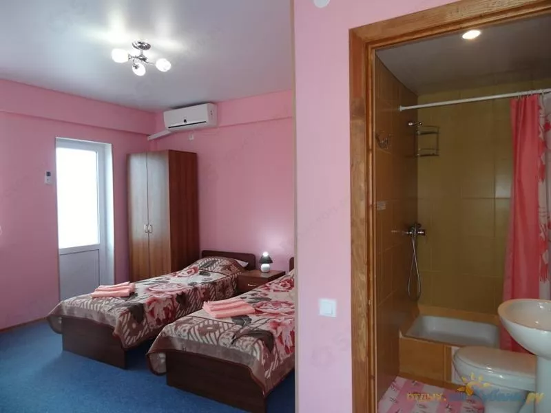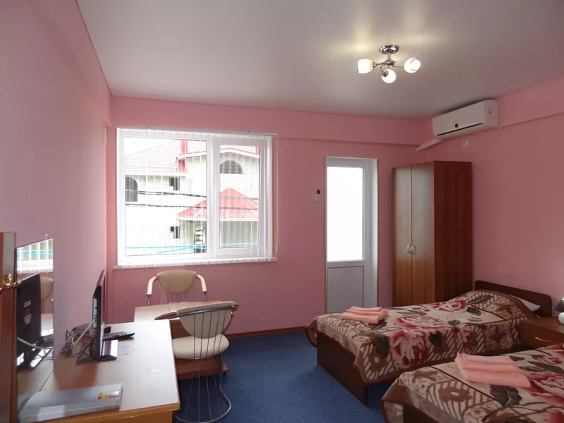"Индиго" отель в Сукко. Общая стоимость путевки рассчитывается следующим образом: стоимость за номер + оплата питания (2х-разовое) из расчета - 500 руб./день с человека. Завтрак + обед, завтрак + ужин или обед + ужин, Вы выбираете на свое усмотрение. 2х-разовое питание обязательно при бронировании номера. По желанию, Вы можете заказать 3х-разовое питание из расчета - 750 руб./день с человека. Дети до 4х лет принимаются бесплатно без предоставления места и питания. Обращаем Ваше внимание: бесплатное размещение возможно только для одного ребенка в номере. Детские кроватки предоставляются бесплатно, для детей до 2х лет. Для наших гостей организован бесплатный трансфер на пляж п. Сукко, пляж п. Большой Утриш и Озеро Сукко. Наши автобусы отвозят и забирают гостей 5 раз в день.
