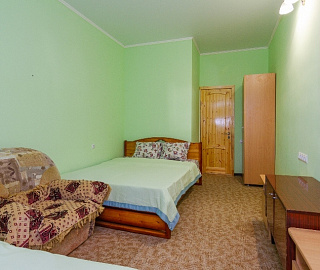 Гостевой дом находится на окраине г. Туапсе, в экологически чистой зеленой зоне среди гор и леса, с выходом к морю (пляж бывшего пансионата "Весна"). Комнаты большие, с высокими потолками, прохладные, почти в каждой балкон. На этаже санузел, холодная и горячая вода. Во дворе есть летние души, автостоянка, мангал для шашлыка, беседка, бильярд - в общем - все условия.