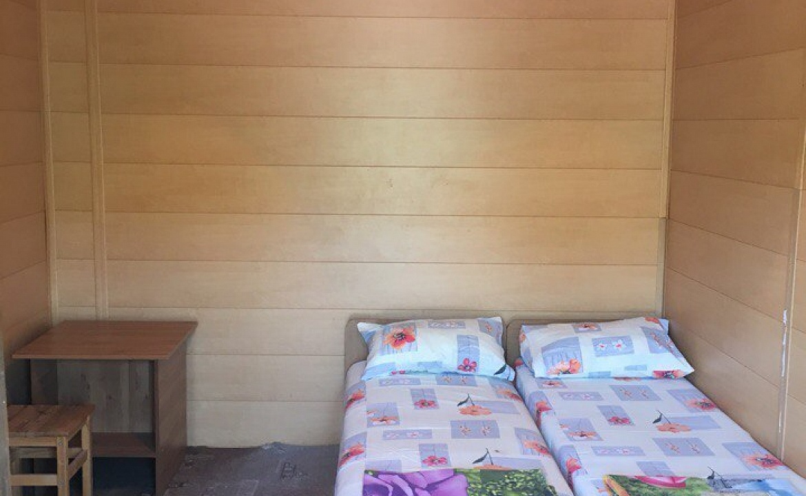 Мебель: односпальные кровати, шкаф, вешалка, зеркало. Удобства: вентилятор, холодильник, балкон (общий).