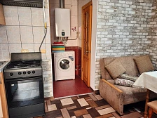 В квартире две изолированные комнаты, проходная кухня-гостиная: двух спальная кровать, три раскладных дивана (пять полноценных спальных мест), шкаф, два телевизора, два кондиционера, кухонный уголок, посуда, холодильник, газовая плита, микроволновая печь, стиральная машина, утюг, фен, wi-fi. Сан узел, душевая кабина. Горячая и холодная вода круглосуточно. Автономное отопление позволяет комфортно отдыхать и в холодное время года. При входе столик и стулья.