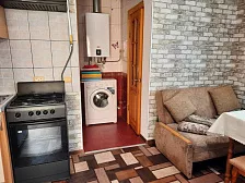 В квартире две изолированные комнаты, проходная кухня-гостиная: двух спальная кровать, три раскладных дивана (пять полноценных спальных мест), шкаф, два телевизора, два кондиционера, кухонный уголок, посуда, холодильник, газовая плита, стиральная машина, утюг, wi-fi. Сан узел, душевая кабина. Горячая и холодная вода круглосуточно. Автономное отопление позволяет комфортно отдыхать и в зимний период.
