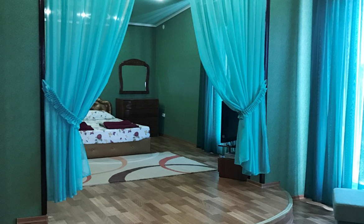 Номера категории Люкс расположены в новом двухэтажном здании, рядом с корпусом имеются уютные беседки для отдыха, качели, много зелени (розы, сосны, кипарисы). В номере все удобства: кондиционер, душевая кабина, туалет, умывальник, холодильник, плазменный телевизор, горячая и холодная вода - круглосуточно; вся необходимая мебель: двуспальная кровать, диван, шкаф с зеркалом, прикроватные тумбочки, туалетный столик, комод, журнальный стол, стулья. Дети до 3-х лет проживают бесплатно. Дети от 3 до 12 лет проживают со скидкой 30%. Номера имеются разной вместимости: двух, трех, четырех и пятиместные.