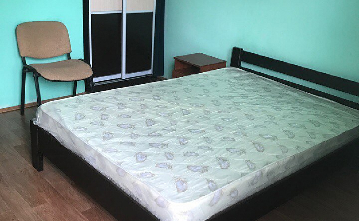 Мебель: двуспальная кровать, мягкий раскладной уголок, шкаф для одежды, прикроватные тумбочки, столик, пуфики