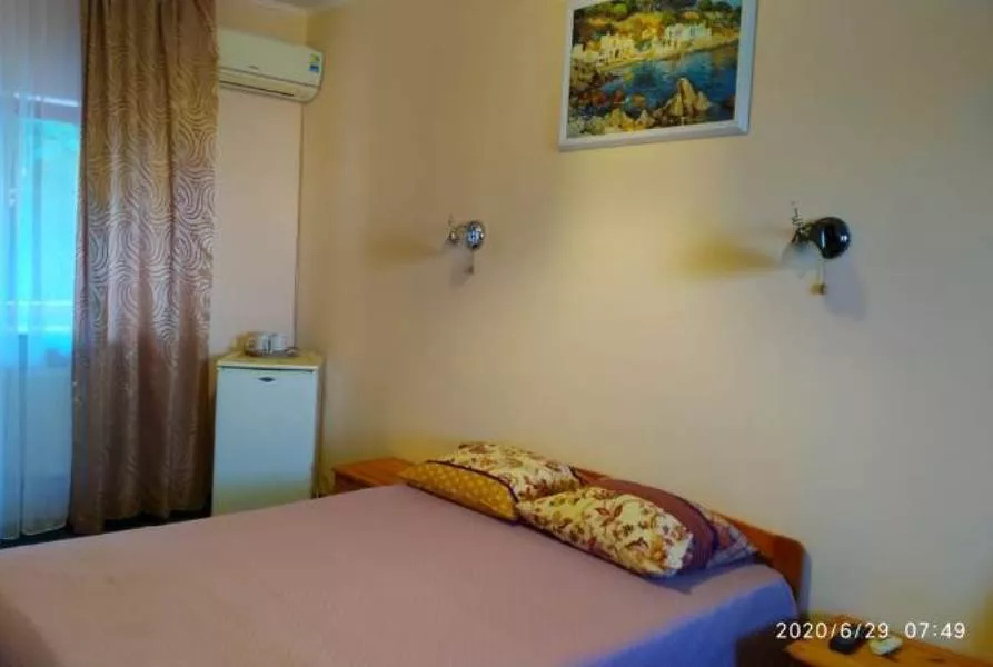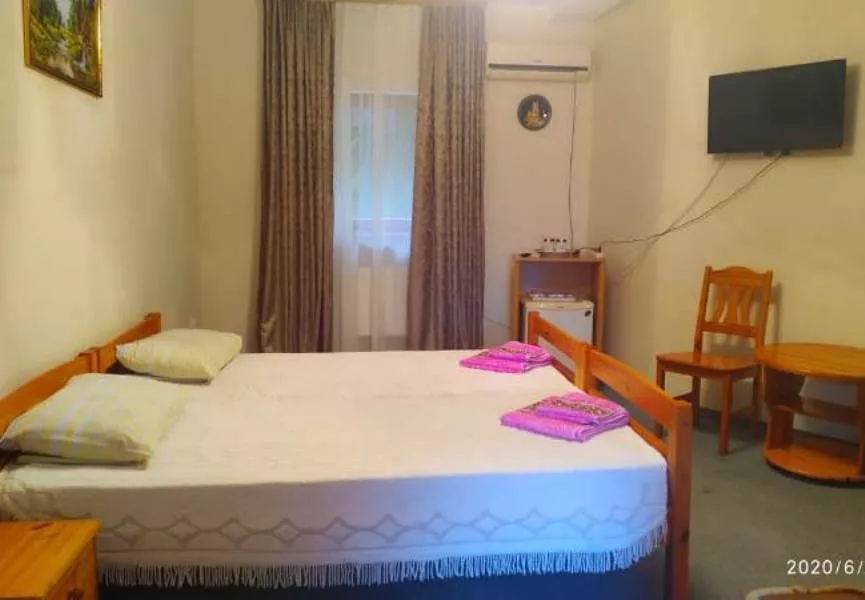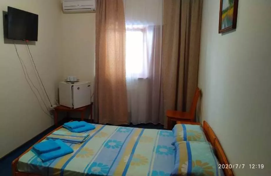 Мебель: двуспальная кровать, стулья, прикроватные тумбочки, стол, вешалка, зеркало. Удобства: кондиционер, холодильник, телевизор, спутниковое ТВ, СВЧ, эл. чайник, посуда, интернет, душевые принадлежности