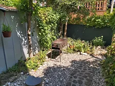 Первый этаж со своим уютным огороженным отдельным двориком, летней кухней, беседкой для обедов во дворе.