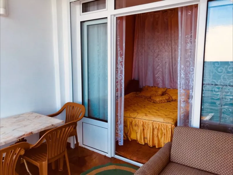 В "До моря 9 метров" каждая лоджия с видом на море. На лоджии стол, кресла, кресло-кровать. На индивидуальной кухне - электроплита, электрочайник, СВЧ, весь набор посуды. Горячая и холодная вода постоянно. В санузлах стиральные машины. А также всё для длительного и комфортного отдыха - кондиционеры и холодильники, телевизоры, фен, утюг, постельное белье, полотенца.