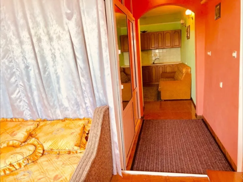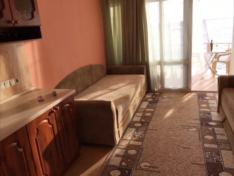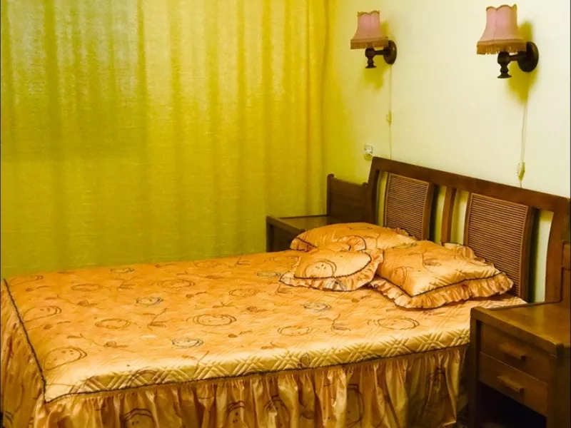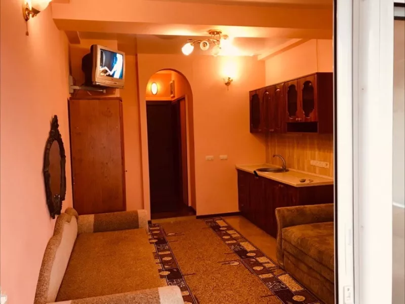 Мебель: односпальная и двуспальная кровати, кресло-кровать, кресла, стулья, шкаф, стол, зеркало, кухонный гарнитур, обеденная зона. Удобства: кондиционер, холодильник, телевизор, кабельное ТВ, стиральная машина, СВЧ, эл. чайник, эл. плита, утюг (по требованию), посуда, фен, интернет, лоджия, вид на горы и море.