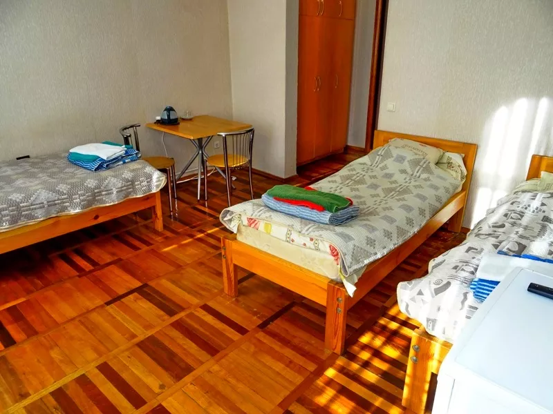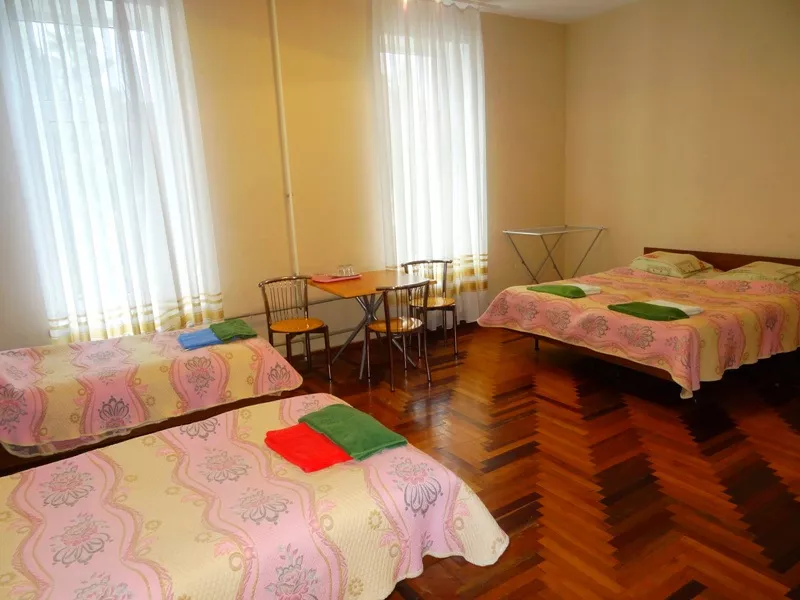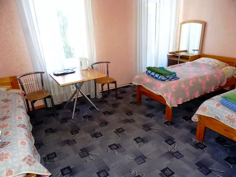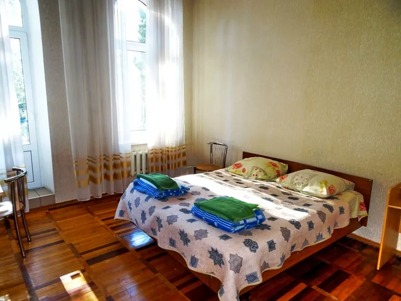 Здание утопает в зелени каштанов и кипарисов. На цокольном этаже расположена кухня с разнообразием блюд. Питание не входит в стоимость проживания. Благодаря тому, что гостиница расположена в центре города около набережной, туристы смогут пользоваться всей инфраструктурой города. До городского пляжа 10 минут ходьбы.