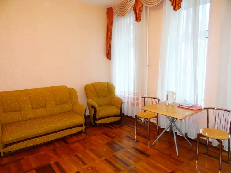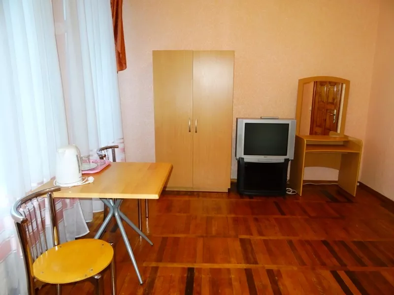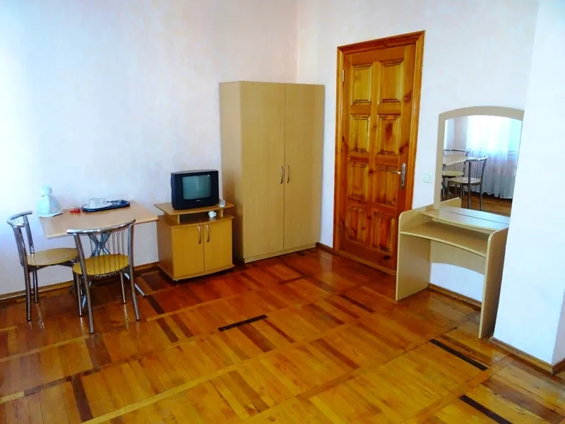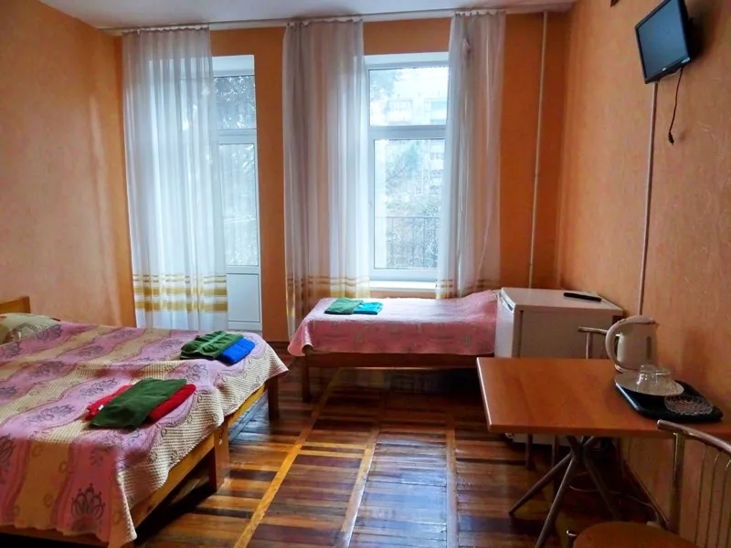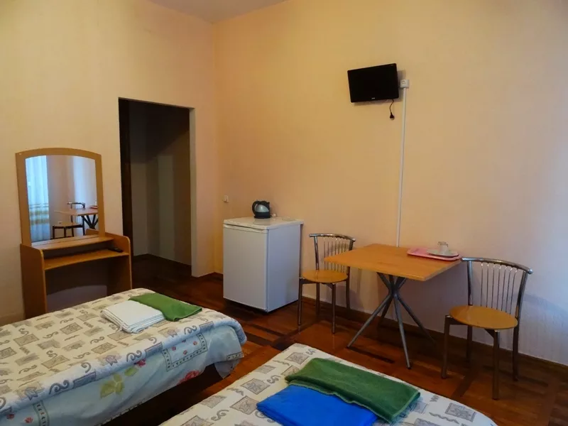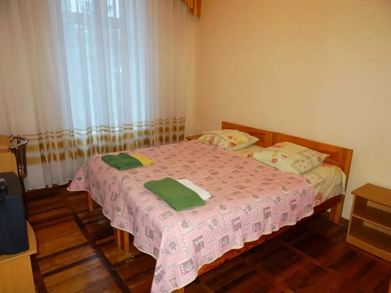 В номерах есть все самое необходимое для комфортного проживания. В каждой комнате удобная современная мебель, санузел с ванной или душевой кабинкой. Горячая и холодная вода есть без перебоев. Также в номерах есть холодильник, спутниковое телевидение и просторный балкон с великолепным видом на город.