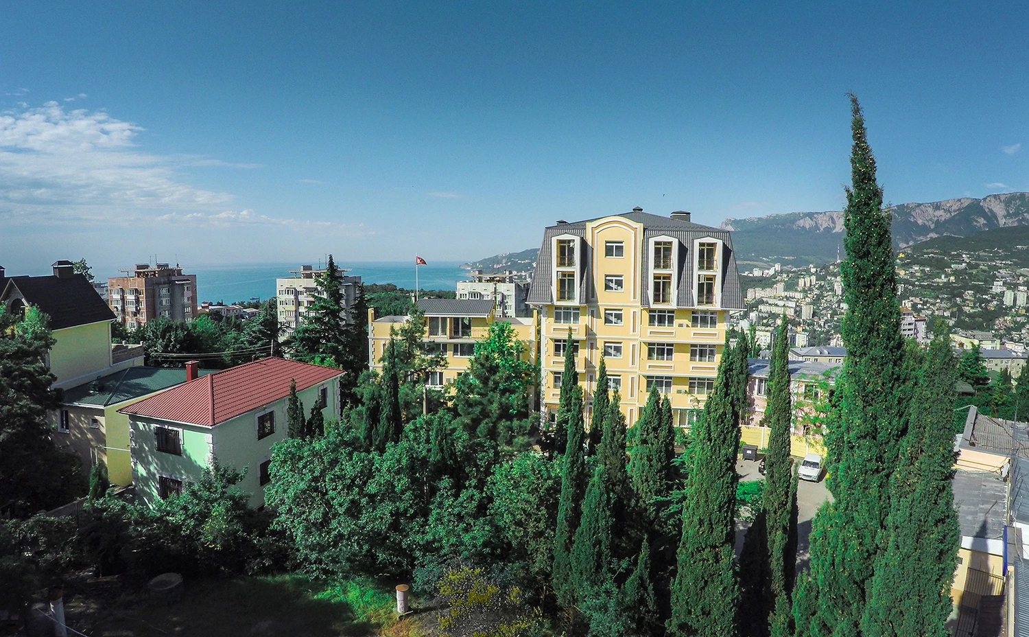 Комфортабельные 2-х комнатные апартаменты, с балконами и потрясающим видом на море, набережную Ялты, гору Ай-Петри и ущелье Уч-Кош.