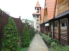 На ухоженной и закрытой территории гостиницы к услугам гостей открытый бассейн с подсветкой, гидромассаж, джакузи, мангал для приготовления шашлыков и барбекю, столовый зал, бильярд, беговая дорожка, тренажер, детская площадка, деревянная качель.