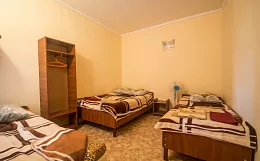 Однокомнатный номер. В комнате 2 одноместные и одна двухместная кровати. Wi-Fi в номере, телевидение, столик и набор стульев на веранде.